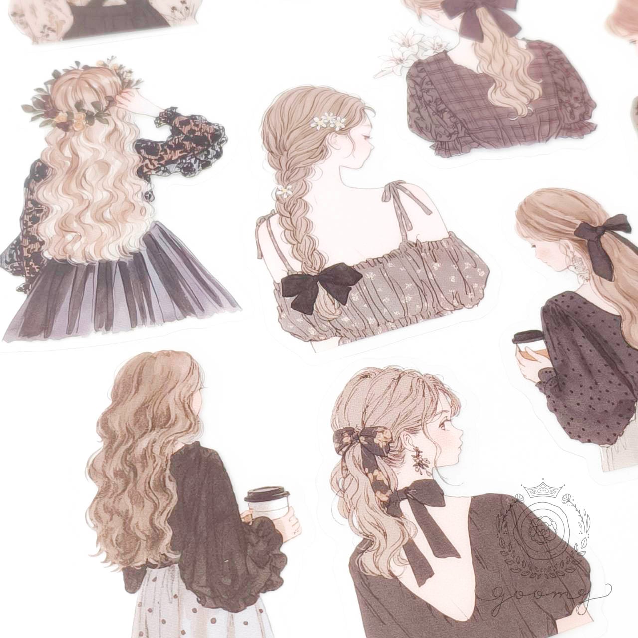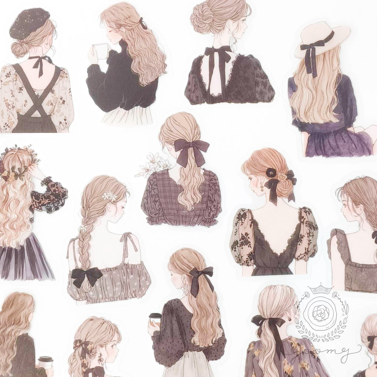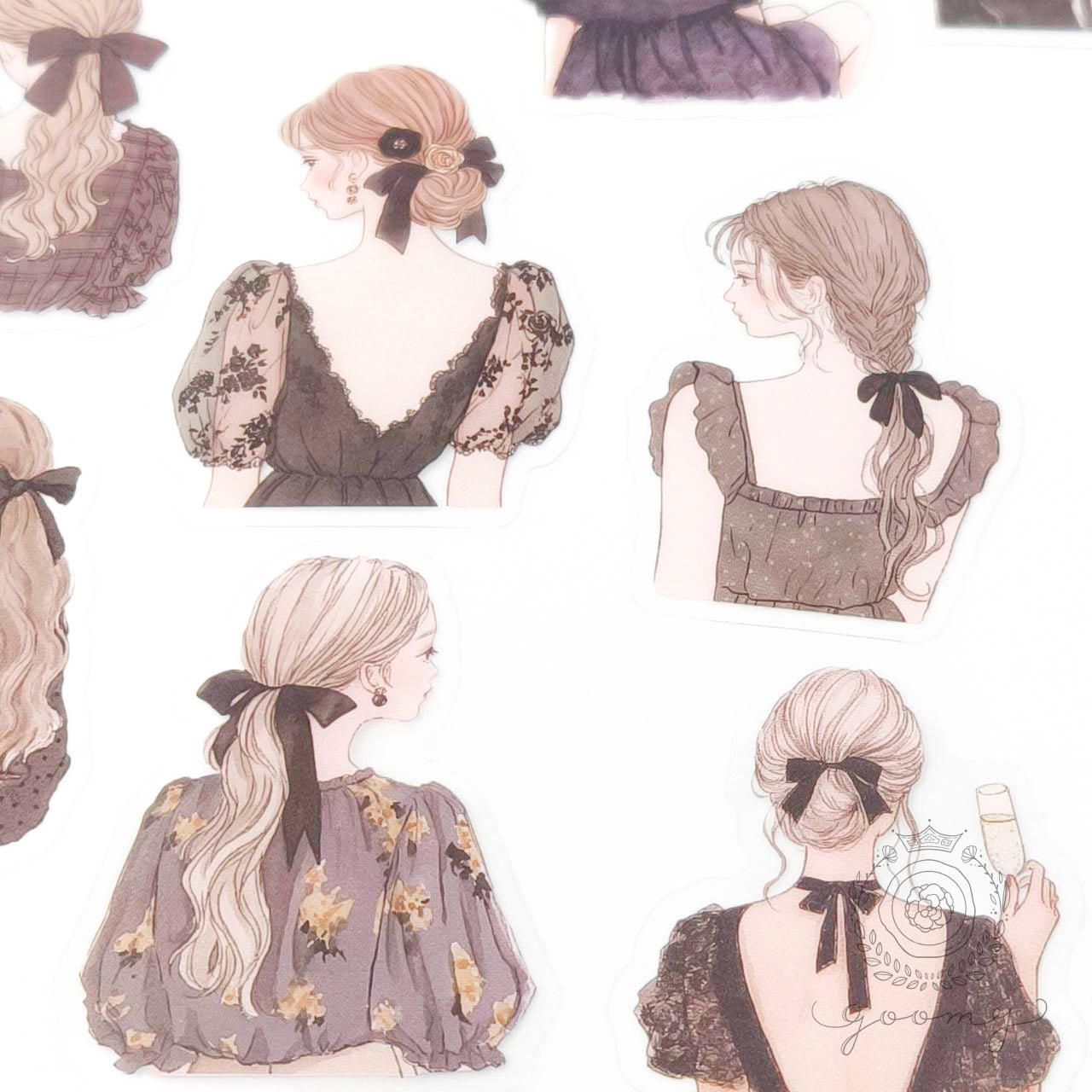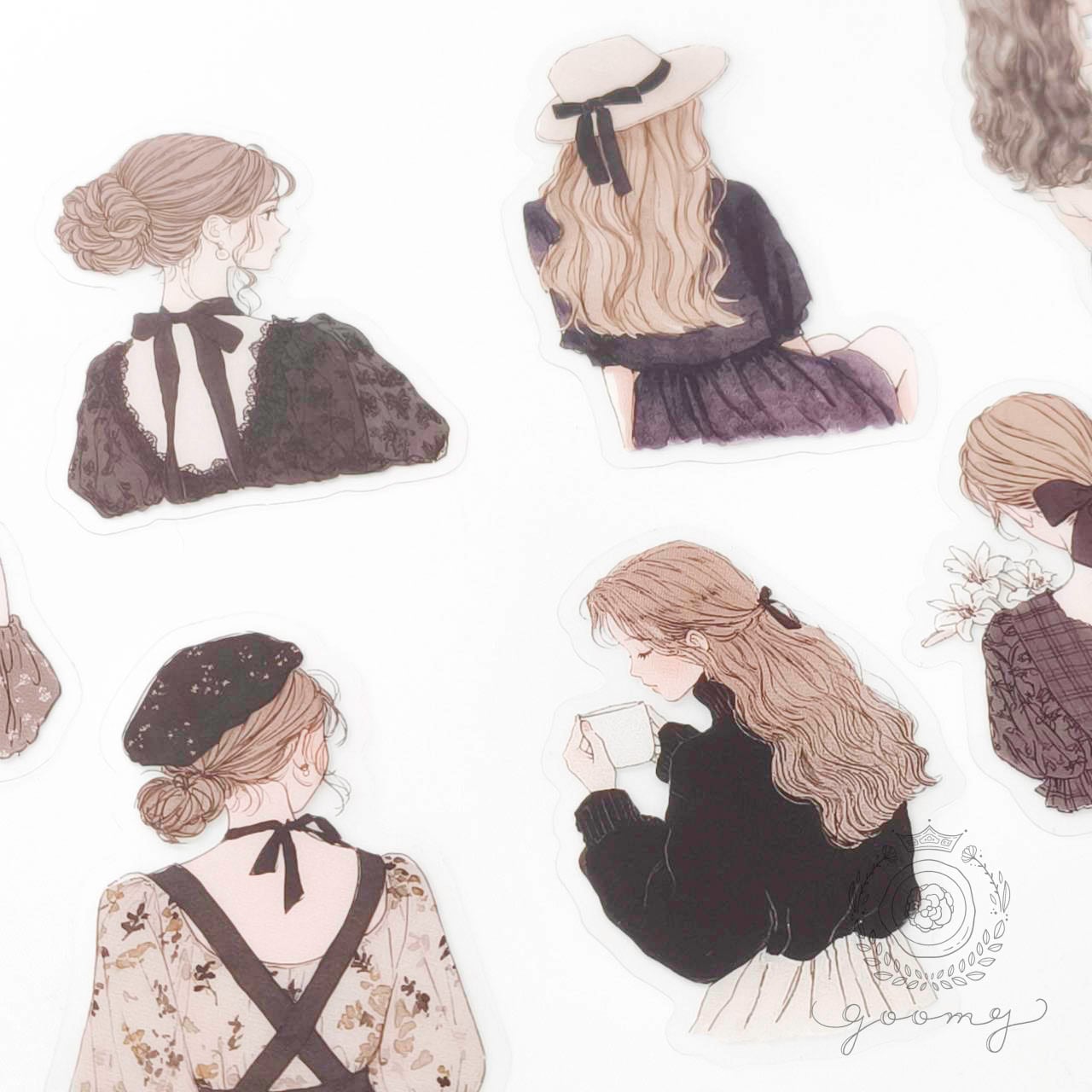 後ろ姿イラストシール 3 <S1162>