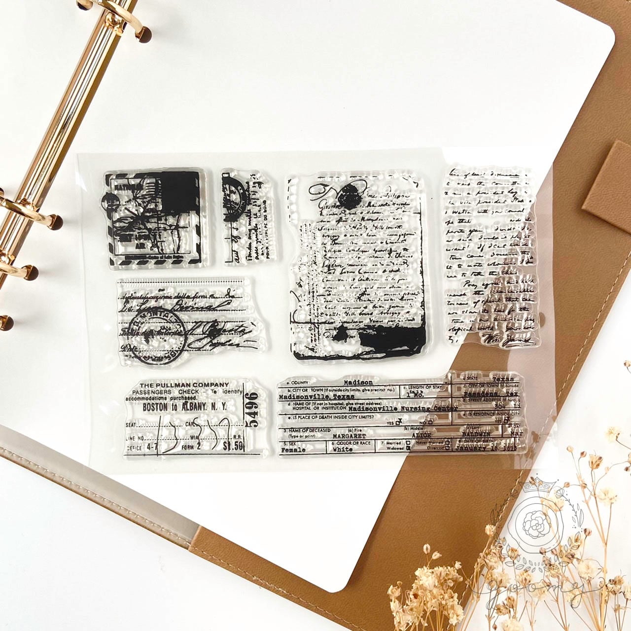 お手持ちの木やプラスチックケース等に貼り付けて使用しても、シートから剝がさずに全体を押印し、コラージュペーパーとして楽しんだりと使い方は様々です。